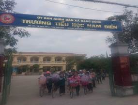 Trước thực trạng đó, ngay từ đầu năm học 2025–2026, Trường Tiểu học Nam Điền đã chủ động triển khai đồng bộ nhiều giải pháp nhằm đảm bảo an toàn giao thông học đường cho học sinh. Nhà trường xây dựng mô hình “Cổng trường An toàn giao thông” với hệ thống pano, áp phích tuyên truyền Luật Giao thông đường bộ. Liên đội phát huy hiệu quả vai trò của đội “Tuyên truyền măng non”, tổ chức phát thanh tuyên truyền trước giờ học và khi tan trường. Đội “Sao đỏ” thường xuyên theo dõi, nhắc nhở nề nếp, đặc biệt là việc chấp hành các quy định về an toàn giao thông của đội viên, nhi đồng.